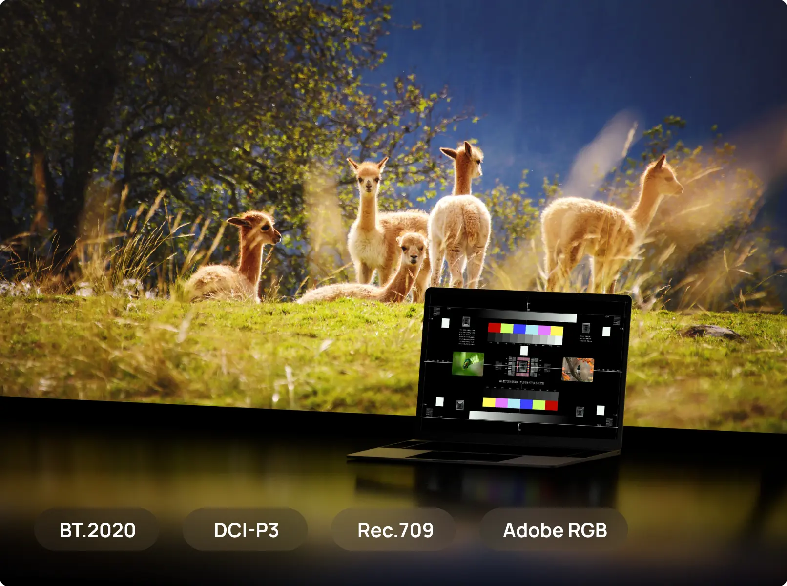 XGIMI erreicht eine extrem hohe Farbtreue nach allen vier wichtigen Farbraumstandards und bietet branchenführende Farbpräzision für eine konstante, natürliche Farbdarstellung.
