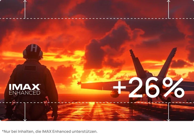 Mit IMAX Enhanced holst du dir das einzigartige Kinoerlebnis direkt ins Wohnzimmer. Tauchen Sie auf einer bis zu 26 % größeren Projektionsfläche in ein gestochen scharfes 4K-Erlebnis ein.*
