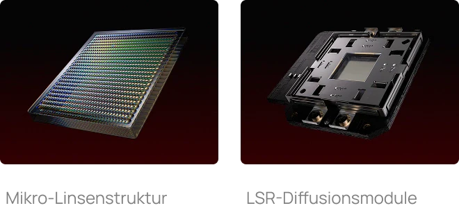 Von Grund auf zur Minimierung von Bildrauschen entwickelt: Unser Hardware-Diffusionssystem mit Mikro-Linsenstruktur, mehrdimensionalen LSR-Diffusionsmodulen und Halbwellplatten reduziert störende Lichtinteferenzen direkt an der Quelle und unterdrückt so effektiv die Bildung von Laser-Flecken.