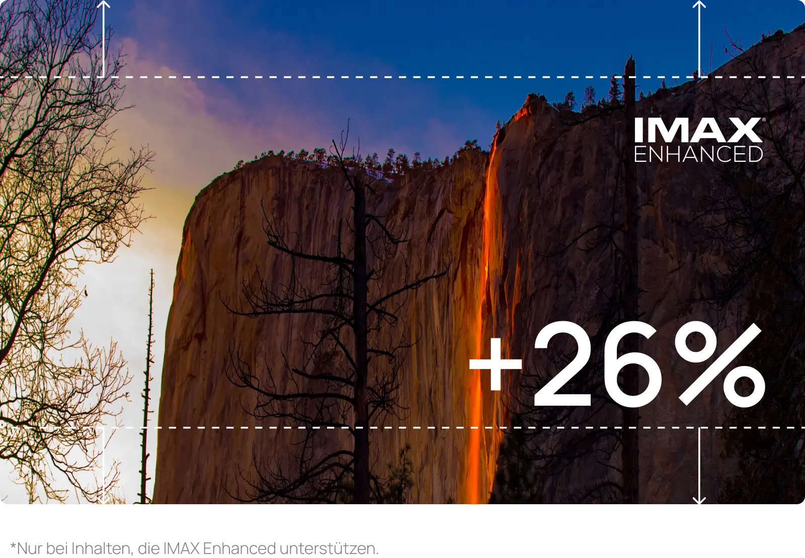 Mit IMAX Enhanced holst du dir das einzigartige Kinoerlebnis direkt ins Wohnzimmer. Tauchen Sie auf einer bis zu 26 % größeren Projektionsfläche in ein gestochen scharfes 4K-Erlebnis ein.*