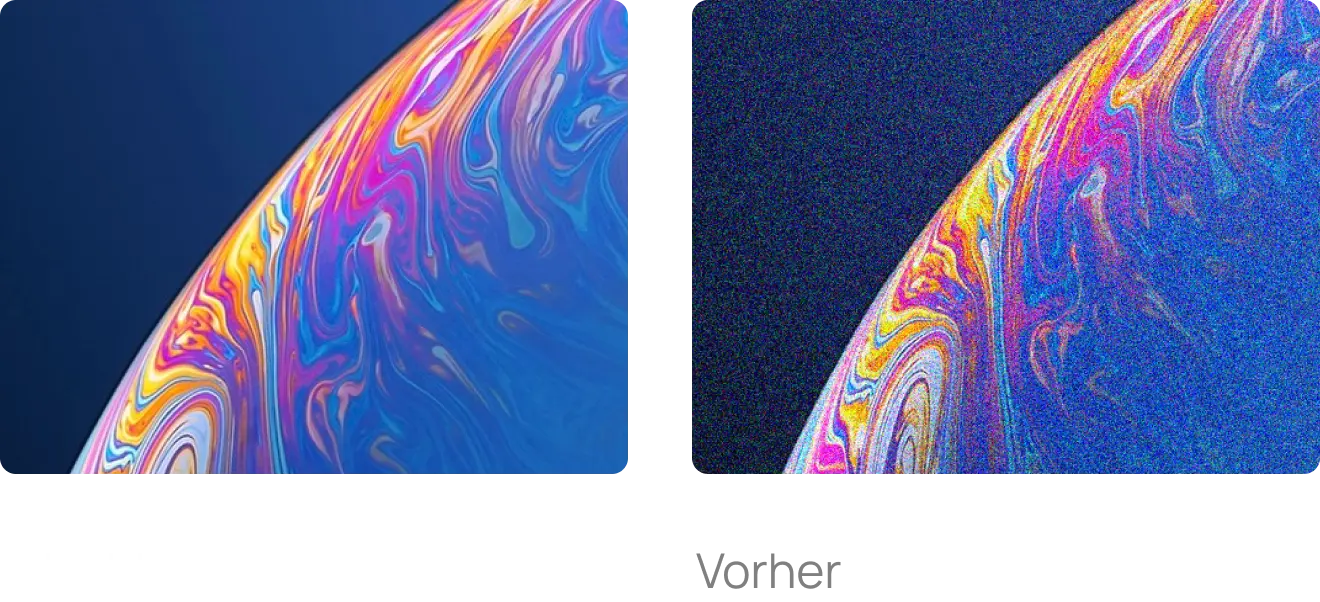 | Kontrast | 20.000:1 Kontrastverhältnis Jedes Detail sichtbar, auch im Schatten | 1000:1 Kontrast Schwacher Schattenkontrast, weniger Details |
