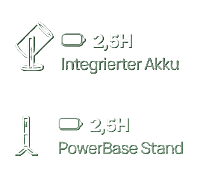 19. Der PowerBase-Standfuß muss separat erworben werden, ist aber im Paket mit dem Projektor günstiger. Bei voller Ladung des MoGo 4 Laser und des PowerBase-Standfußes sind bis zu 5 Stunden Videowiedergabe möglich. Ist die Lichtquelle deaktiviert, kann Musik bis zu 12 Stunden bei unter 50 % Lautstärke wiedergegeben werden.