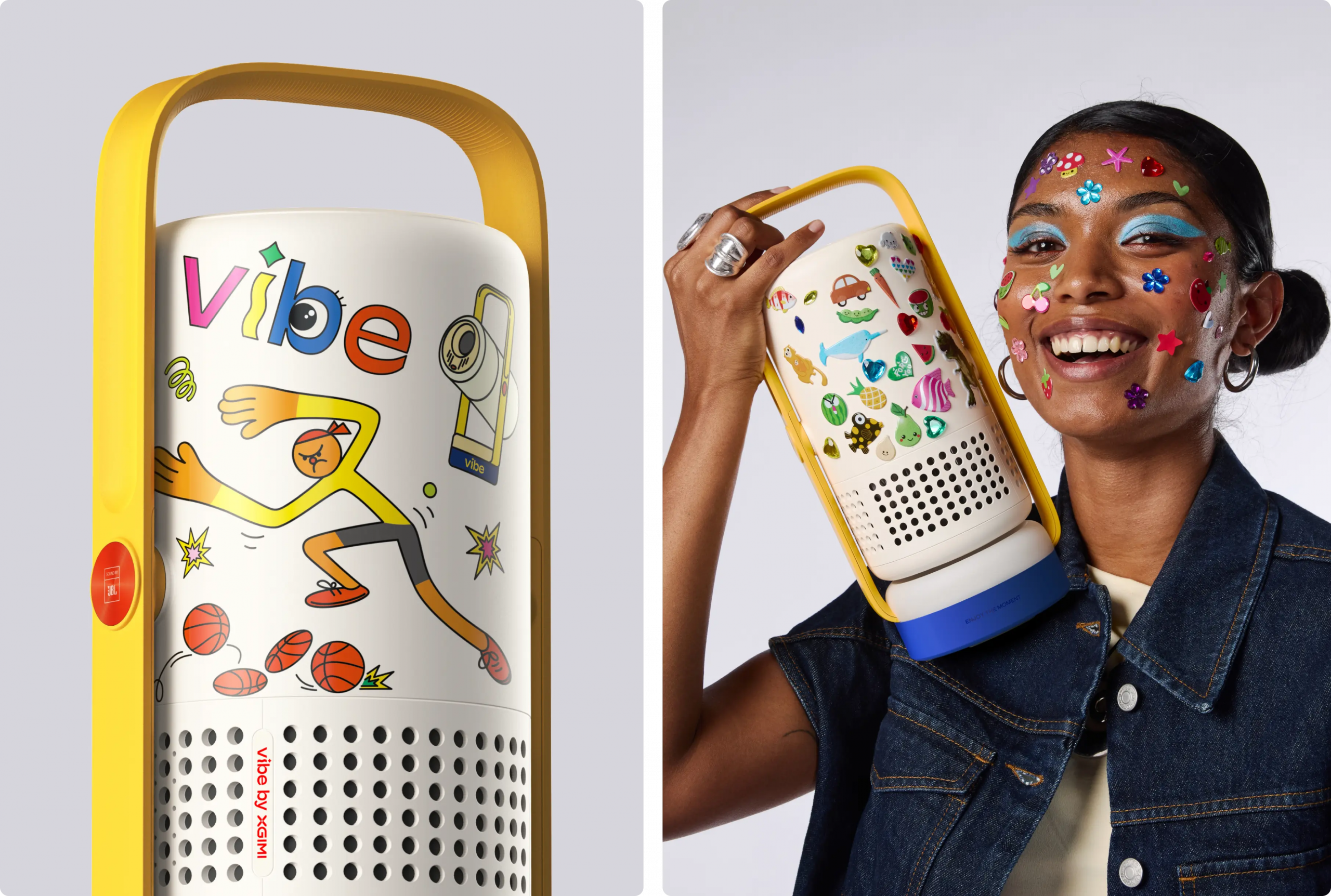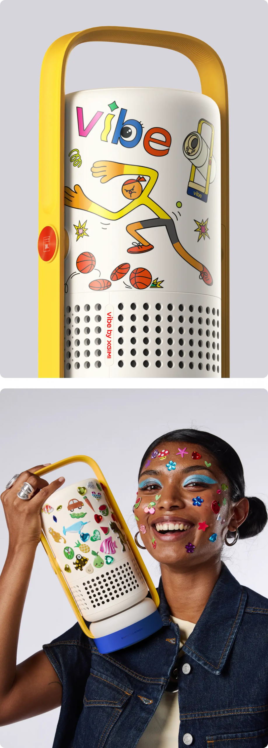 Warum langweilig, wenn’s auch individuell geht? Jeder Vibe One (mit Akku) wird mit einer Auswahl an Stickern geliefert, mit denen du deinen Projektor in deinem eigenen Style gestalten kannst.